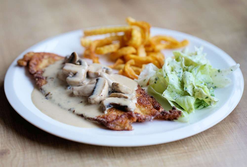 Als Beilage dazu empfehlen wir Mischpilze und Pommes.
